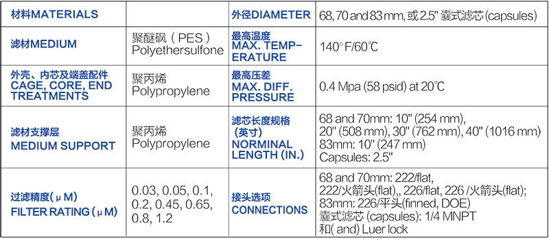● 所有折叠式滤芯和囊式滤芯均采用高洁净度聚醚砜薄膜和纯聚丙烯原生料注塑件。
