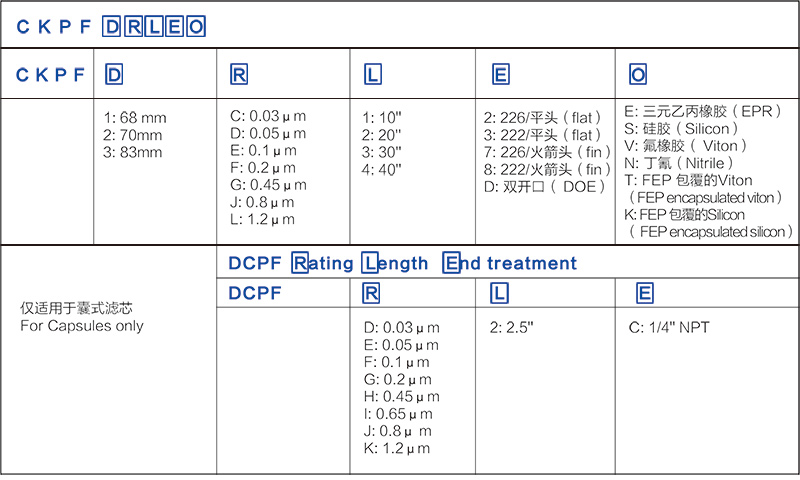 ● 滤芯外形尺寸有68 mm、70 mm、83 mm 外径和2.5英寸囊式滤芯四种规格可供选择。