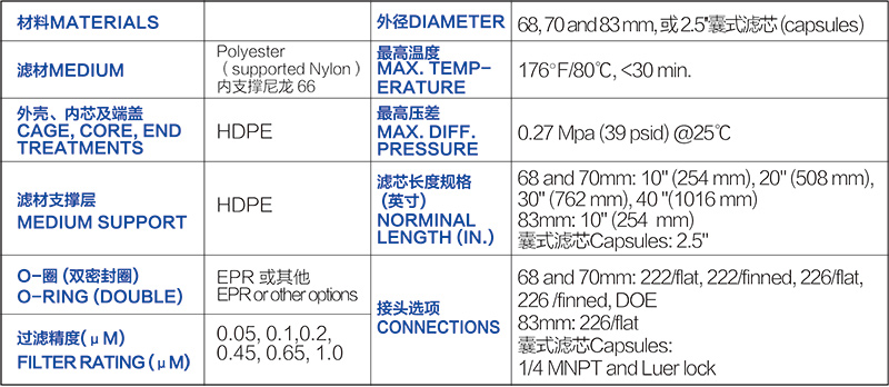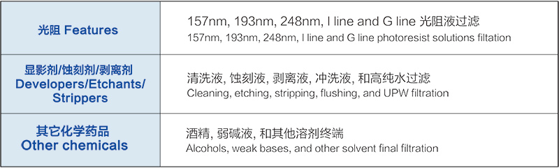 ● 适合高纯水和化学液过滤。