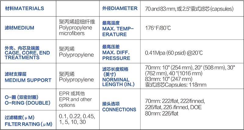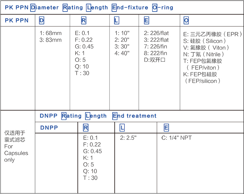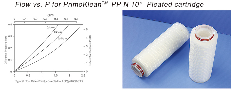 PrimoKlean™ PPN系列滤芯产品有多种过滤精度, 滤芯长度, 以及滤芯外径, 供客戶选择进而满足不同应用要求, 滤芯半径有68, 70 和 83mm, 和 2.5'' 囊式滤芯。囊式滤芯有1/4吋NPT进出液口和Luer lock配件排气/洩液口。