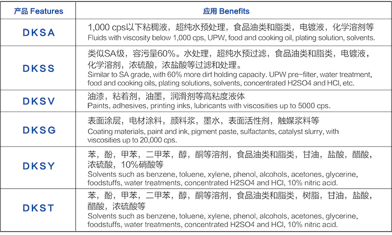 DuraKlean™ SA是供1,000 cps以下粘稠液体过滤。用在水处理,食品,电镀液等处理。